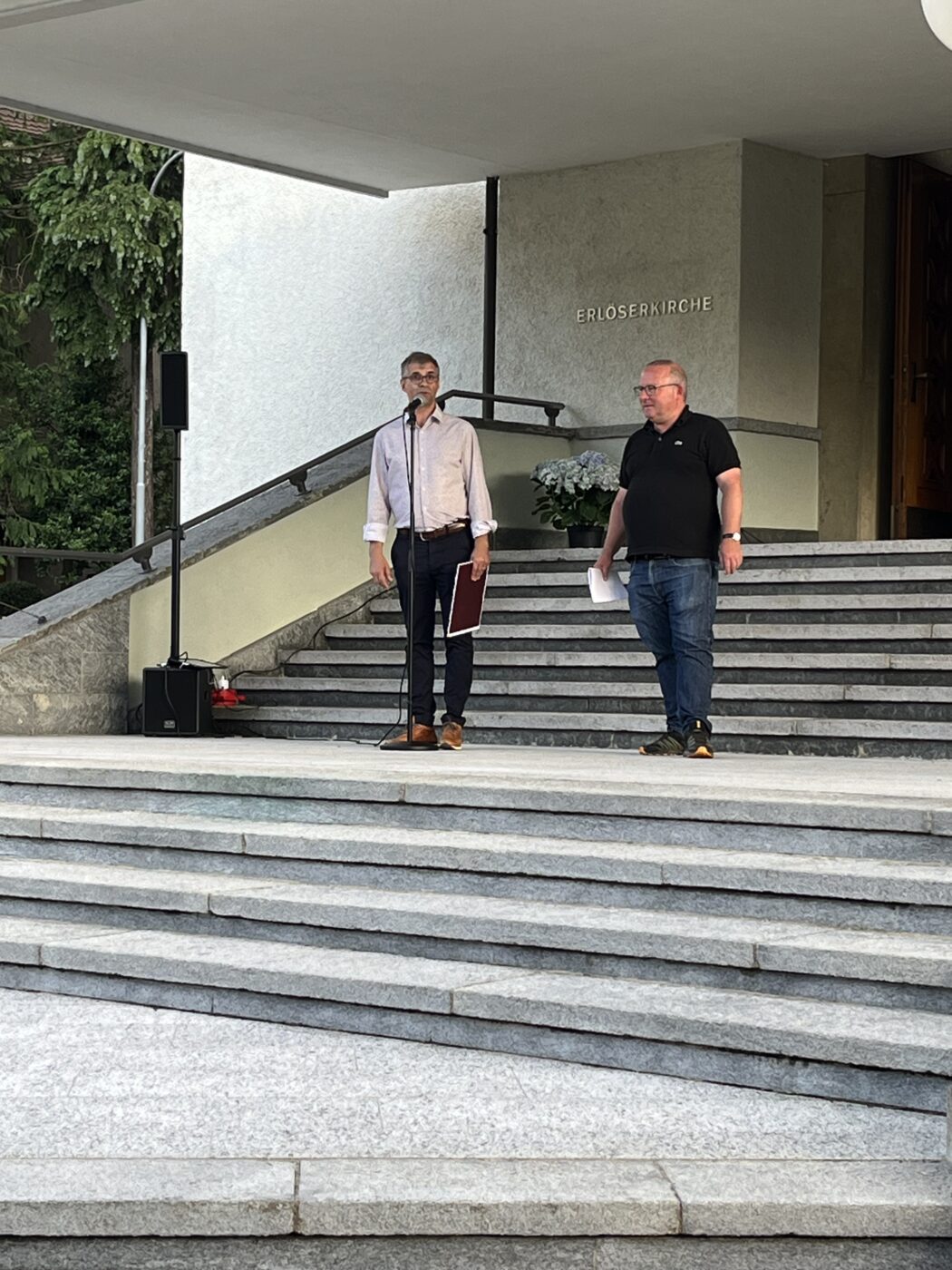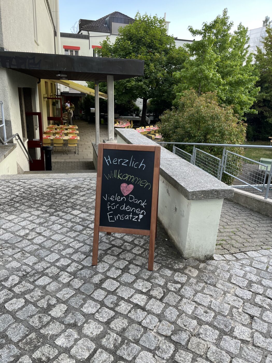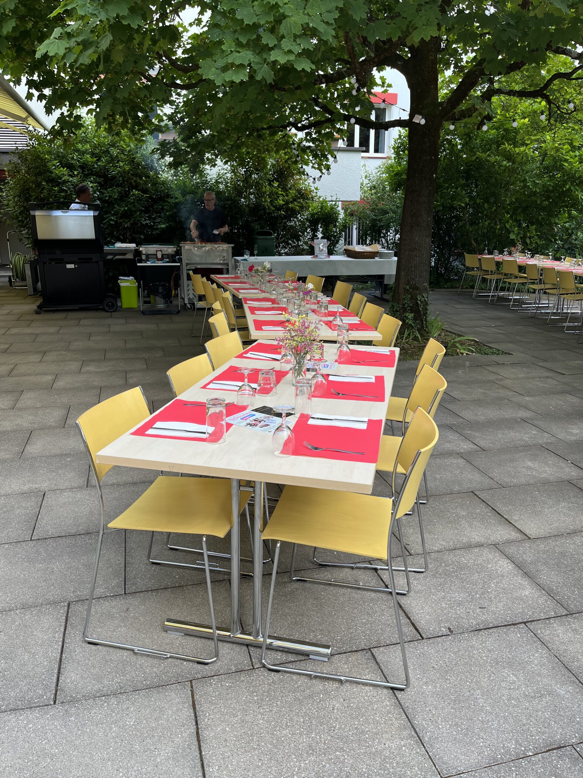 Festlich sah es im Hof der Kirche Erlöser aus. Die gedeckten Tische luden auch dieses Jahr wieder alle Helferinnen und Helfer zu einem gemütlichen Abend ein.